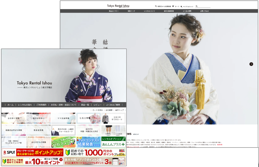 衣装レンタルサイト「東京レンタルいしょう」本店を中心に楽天市場店にも出店して、