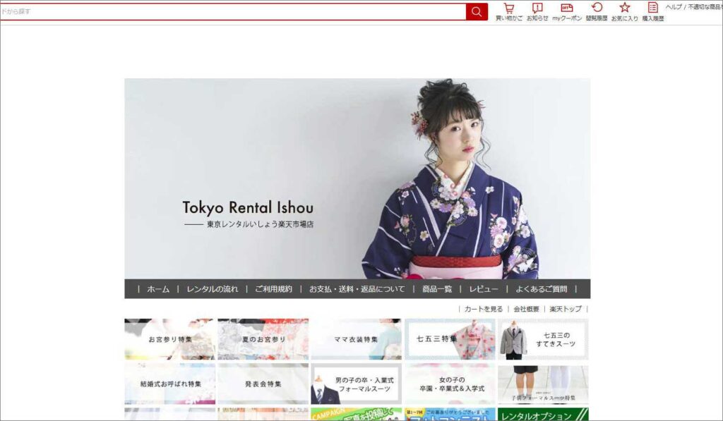衣装レンタルサイト「東京レンタルいしょう」本店を中心に楽天市場店にも出店して、全国のお客様にご利用頂いております。